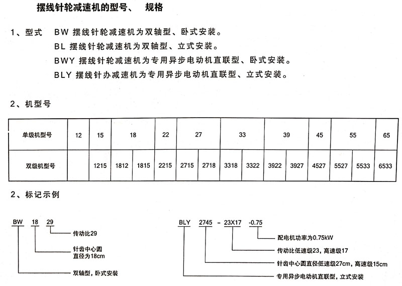 BLY 擺線(xiàn)針輪減速機(jī)為專(zhuān)用異步電動(dòng)機(jī)直聯(lián)型、立式安裝