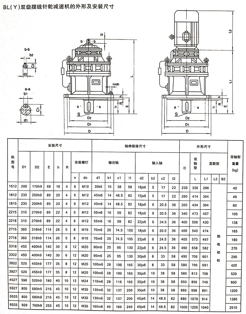 BL 擺線(xiàn)針輪減速機(jī)為雙軸型、立式安裝。